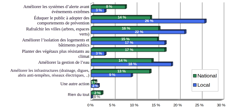 - planter des végétaux résistants au climat (17%, le meilleur score ce qui contraste avec le score local)