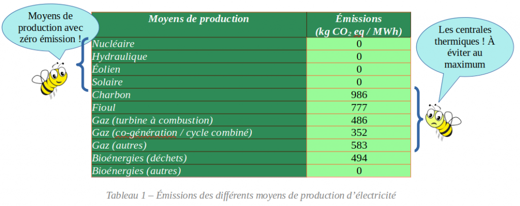 Compte tenu de cela, si on veut réduire les émissions de production d’électricité, il faut réduire la part d’électricité produite avec les centrales thermiques, les seules qui émettent des gaz à effet de serre.