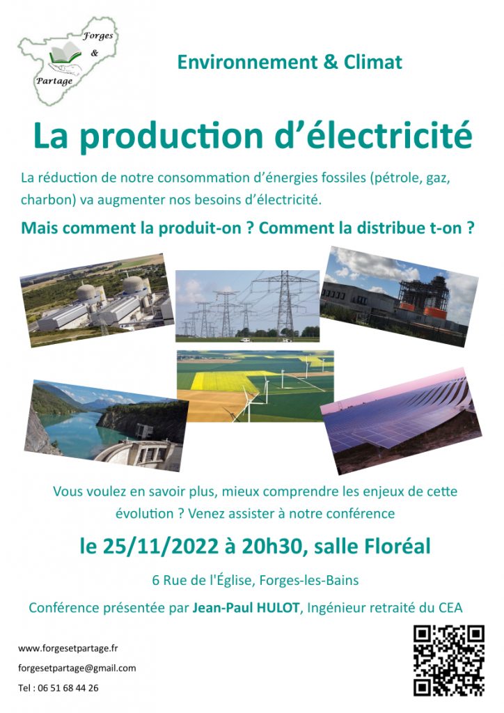 Notre conférence s’est tenue le 25/11/2022. Elle a rassemblé un public intéressé par le sujet. La conférence a été suivi d’un débat, où nous avons parlé un peu d’énergie nucléaire et surtout de Station de Transfert d’Énergie par Pompage (STEP), seule solution de stockage déployée à grande échelle. Si vous êtes intéressés, la présentation est disponible en téléchargement. Nous remercions à nouveau Jean-Paul Hulot pour toute la préparation.